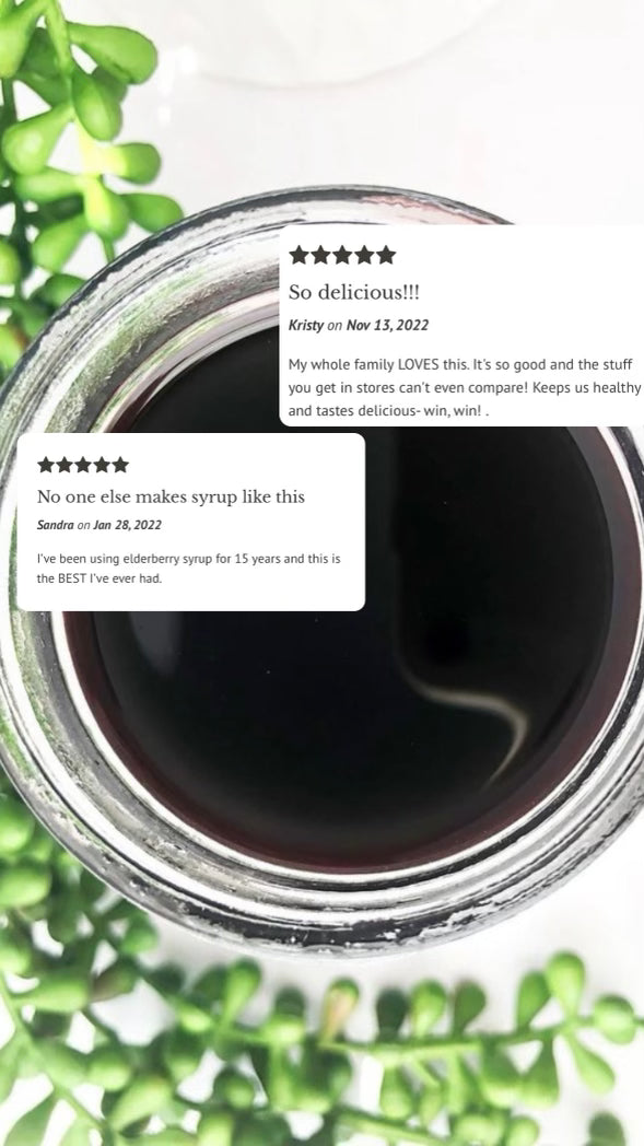 I created a super potent and delicious syrup that will have your kids reminding you for their daily dose. Herbal Elder syrup is rich in Alkalinity, loaded in Antioxidants, helps reduce fever & inflammation, is known for boosting immune systems and speeding up recovery time when sick.