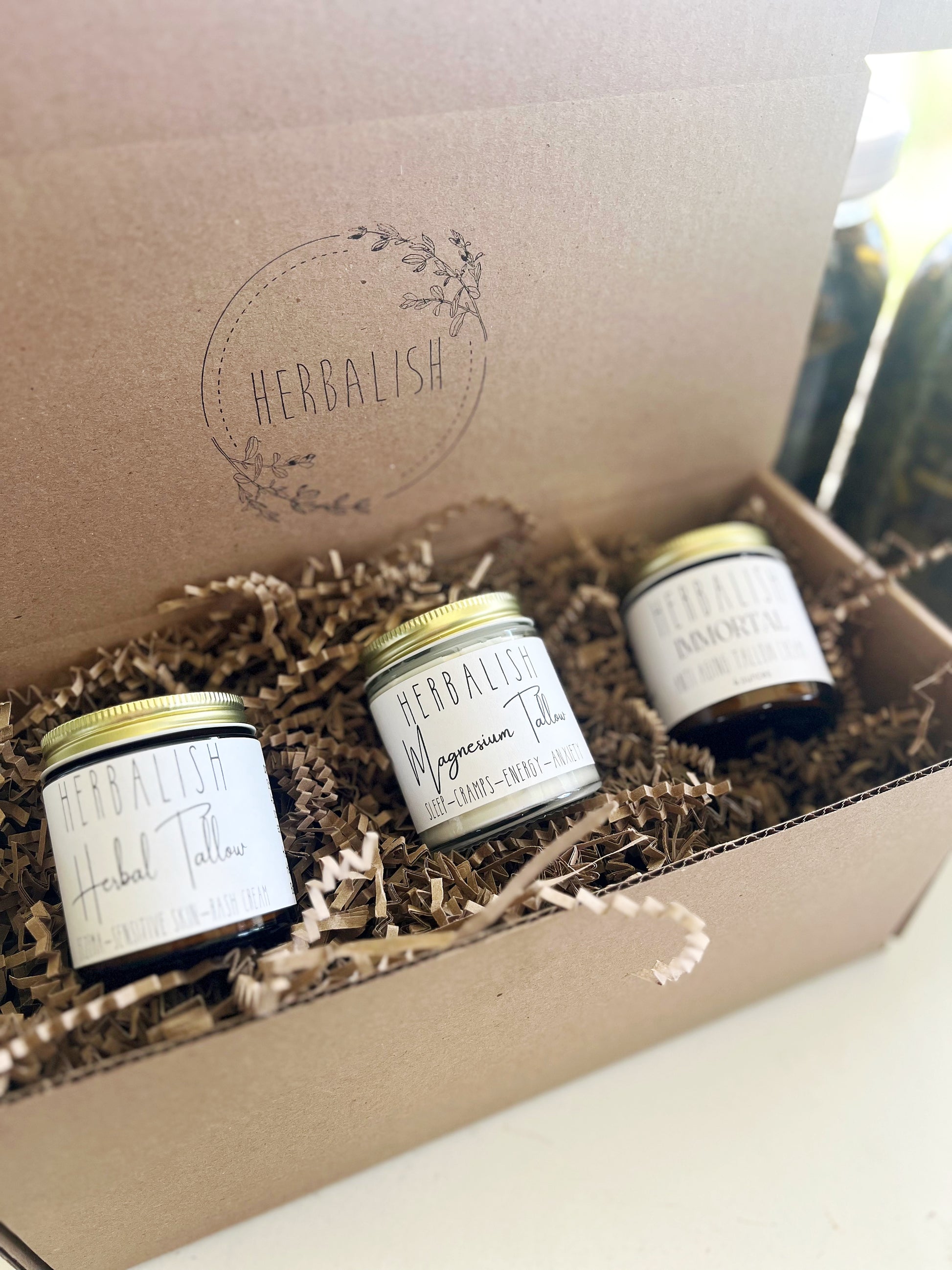 My tallow is Herbalist made with real infused oils with real herbs and absolutely no essential oils or coconut oils which can irritate skin issues. An all over, super hydrating and nourishing butter; excellent for eczema, skin rashes or diaper rash, baby acne, super dry & irritated skin and let’s not forget the dreaded chaffing! It is also fantastic for helping the skin recover from Molluscum Bumps! Made of only Grass Fed Tallow, Olive Oil & Calendula Flowers & Creosote Leaves for extra soothing medicinal powers. This is a super dense cream with no water or fillers so a little goes a long way. This will last years due to no water ingredients. Tallow has also been used for small wound care for its restorative properties, clarifying skin and to give skin that hydrated and glowing look! Each jar is handmade by me in extremely small batches. Larger jars available for those who have a large area to cover!